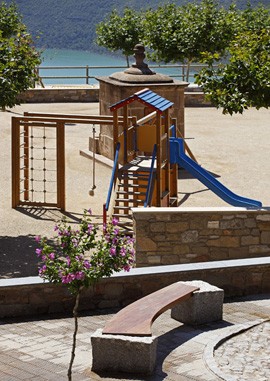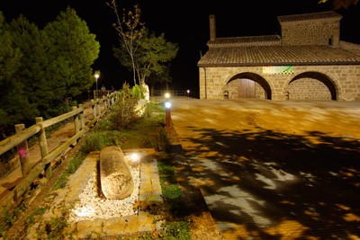 Allà també farem una visita guiada en la qual ens mostraran molts dels elements que es van endur de l’antic poble: La Font d’en Christian Tobin (escultura de pedra que es mou per l’impuls de l’aigua), El Foc del Pelegrí, l’església Parroquial de Sant Pere, el pou cobert, els pòrtics, sarcòfag, làpida, ...