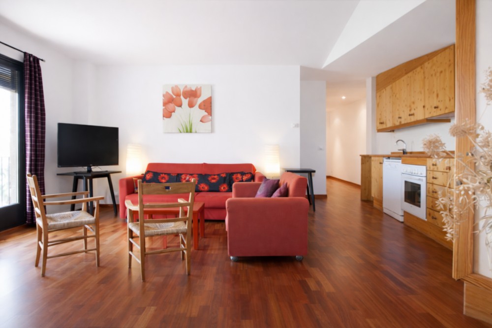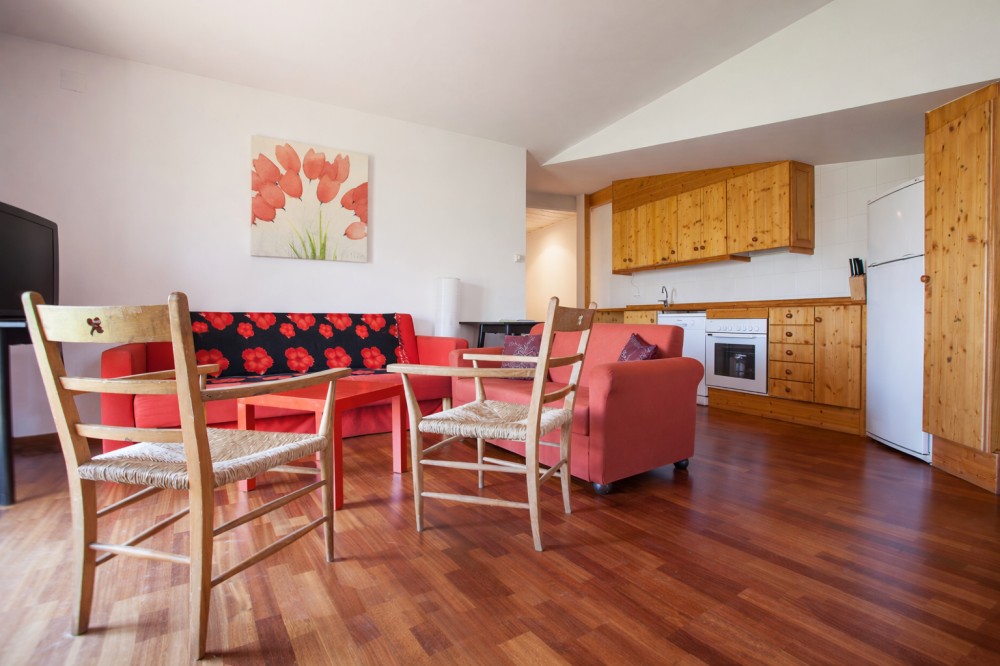 Cal Martí és un apartament d'una sola planta amb una gran sala d'estar amb TV on hi trobem la cuina. La primera porta que trobem es una habitació doble amb bany propi i si continuem pel passadís podem trobar les altres dues habitacions, també amb bany privat. Tota la casa té parquet.