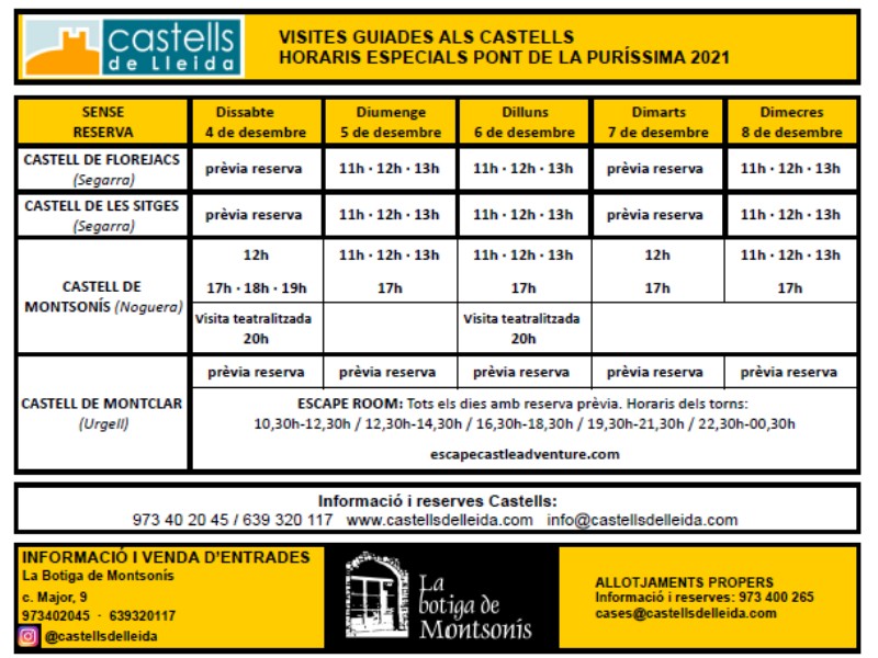 Horaris visites guiades als castells - Pont de la Puríssima 2021