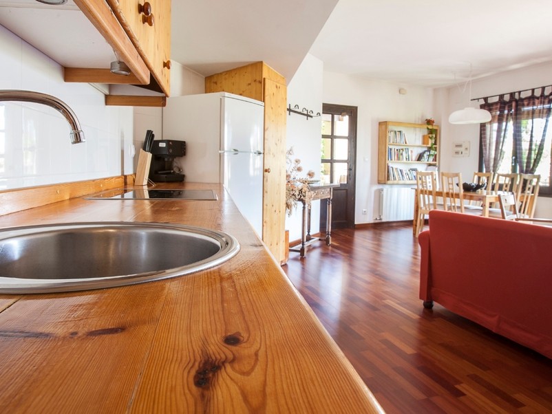 Cal Martí is an apartment one floor distributed as follows: Opening the door of the house, there is a large living room with parquet floor that welcomes us. The same room features a kitchen and can be used as a dining room at any time. The first door they found a double room with bathroom and if we continue down the hall we find the other two bedrooms also with private bathrooms.