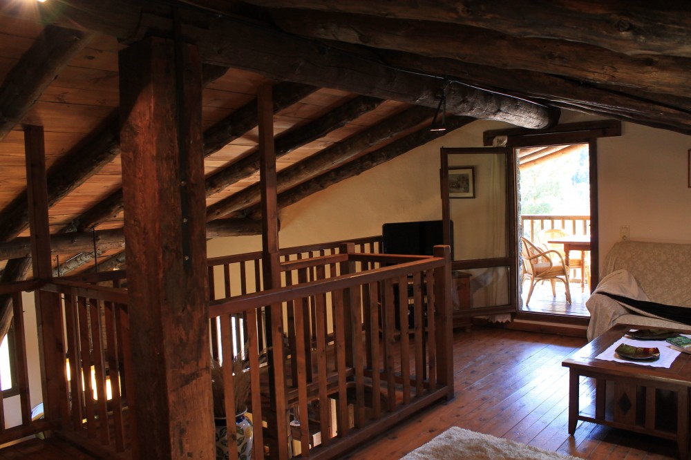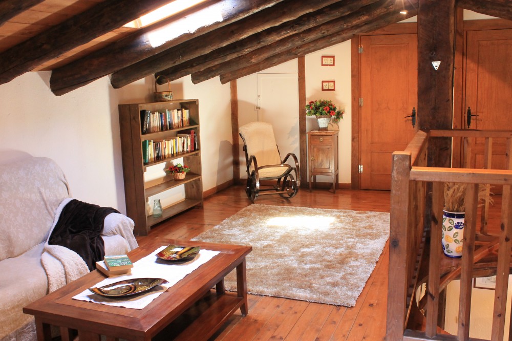 The first floor is accessed from the dining room by an original spiral staircase. There are a large living room with a large balcony overlooking the interior room (sofa, satellite TV and stereo). From the same lounge, we have access to an outdoor terrace, a double bedroom and a fifth bathroom. You can add two extra beds for children.