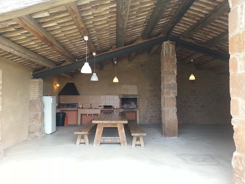 - The old barn area where there is a barbecue with a kitchen assistant and refrigerator. It is equipped with tables and chairs for all occupants of the house. Firewood available.