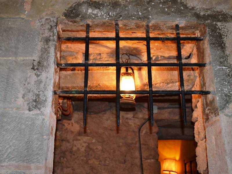 For curious visitors: the original window slits in the wall of the prison to keep an eye on the prisoners, and also on the exterior walls for the defence of the castle. The large dining room, the prison and the dungeon; the access in the church which enables to attend offices from the castle.