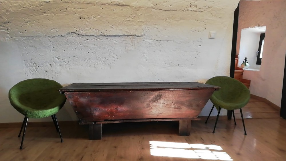 On the two lower floors, there is another double bedroom with a bathroom with a Venetian shower and a living-dining room with a fireplace and kitchen. The house can increase its capacity by 4 additional places, two in the double bedroom and the other two in the living-dining room (sofa bed). It also has a small patio with a table and garden chairs, as well as a built-in barbecue, with a view of the valley.