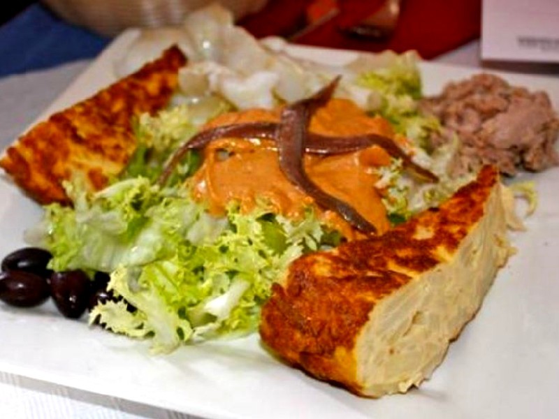 When serving the dish is decorated with cod, tuna, anchovy fillets and olives. And you can eat, always accompanied by tortillas artichokes, beans or black sausage, among others.