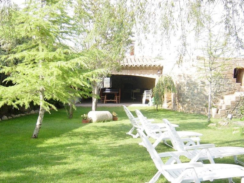 Este alojamiento tiene a disposición una gran zona exterior ajardinada con piscina tipo romano rodeada de columnas con el agua que procede de una fuente, otra piscina más pequeña para niños, una zona infantil, un jacuzzi al aire libre (en funcionamiento, aproximadamente de semana santa en octubre), vestuarios con baño completo y zona de barbacoa bajo un porche cubierto con cocina de verano. Esta zona se a compartir con otro alojamiento de 2 plazas.