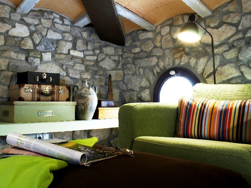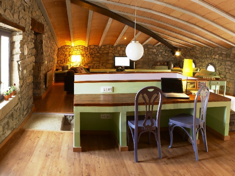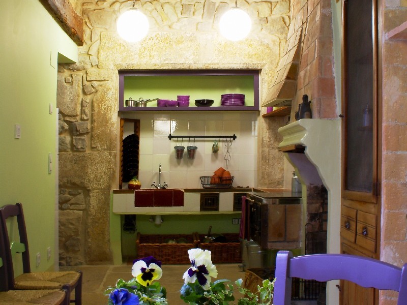 Subiendo las escaleras llegamos a la primera planta donde encontramos la cocina que mantiene su estilo rústico y con una chimenea antigua, 1 habitación de matrimonio, 1 habitación doble con litera y 2 baños totalmente equipados. En la segunda y última planta es donde nos encontramos una gran sala de estar con un sofá cama de matrimonio y 1 habitación con cama individual convertible en cama de matrimonio.
