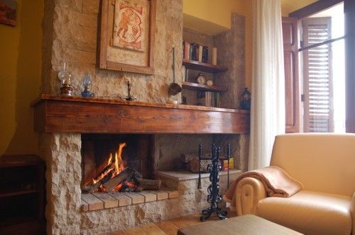 Sala de estar comedor con chimenea