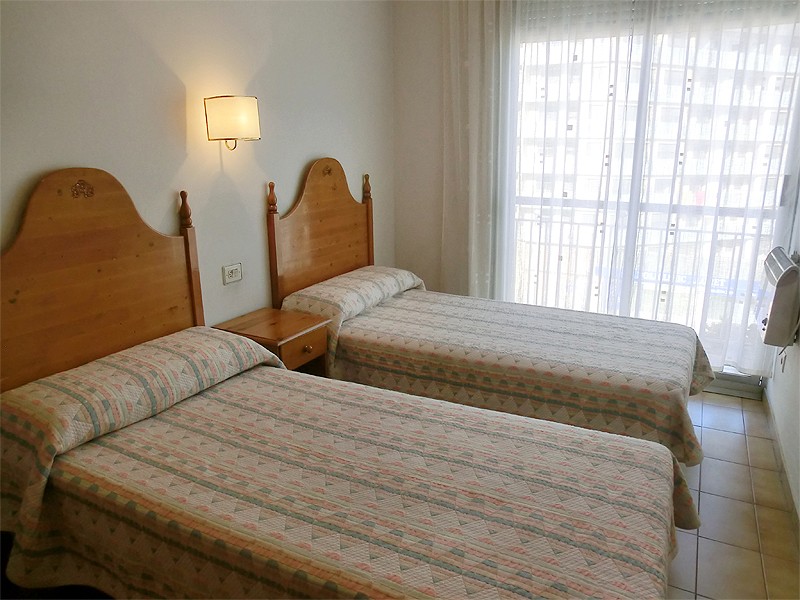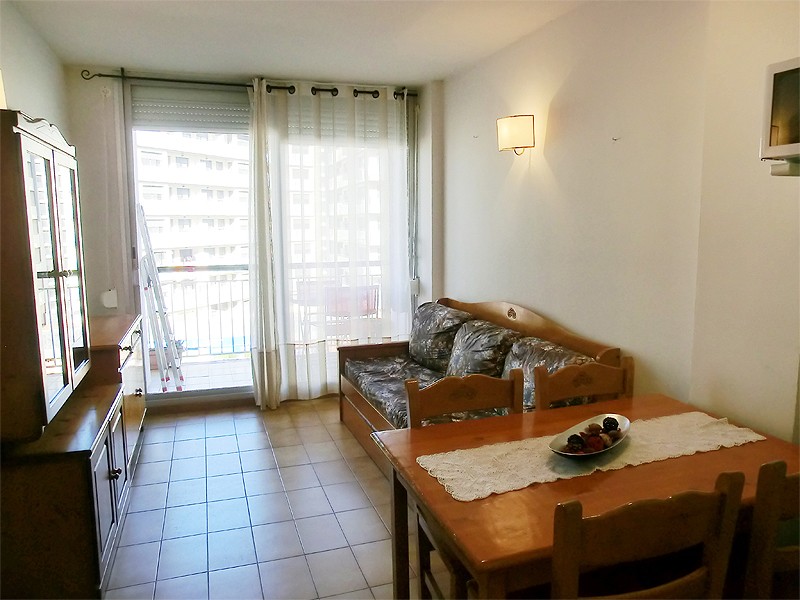 Apartamento sencillo (40m2), situado en Lloret de Mar, en la zona de Fenals, a unos 30m de la playa y 400m del centro. El apartamento dispone de un salón comedor (tv, sofá cama doble) con una cocina abierta (microondas, vitrocerámica), pequeño balcón. 1 habitación doble (2 camas individuales) y 1 baño con ducha (lavadora). Ascensor. Calefactores eléctricos opcionales (coste no incluido, precio extra en cada uso 30 euros/semana). Urbanización con una agradable zona de piscina y jardines comunitarios.