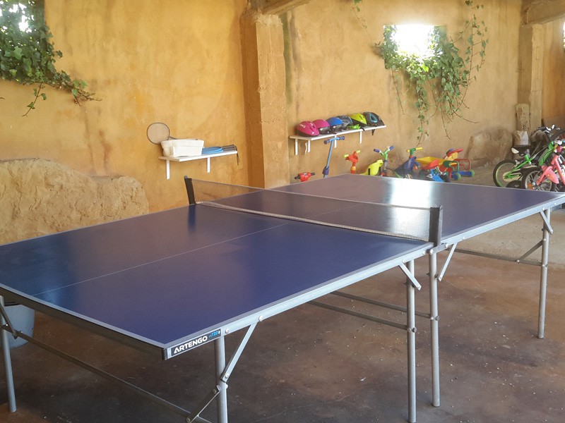 Zona de porche donde hay un ping-pong y bicicletas para grandes y pequeños y un rincón ideal para los más pequeños de la casa con juegos y tabletas para ellos