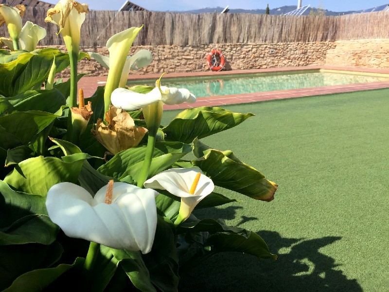 Al entrar en la casa llegaremos a un patio luminoso con mesas pequeñas, una zona de barbacoa y una entrada en un comedor con chimenea ideal para hacer encuentros en familia. Desde aquí tendremos acceso a la zona de la piscina con chill-out, que esta asegurada por una puerta cerrada, y otra puerta que nos da acceso a la zona de jacuzzi y sauna.