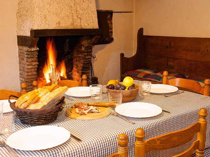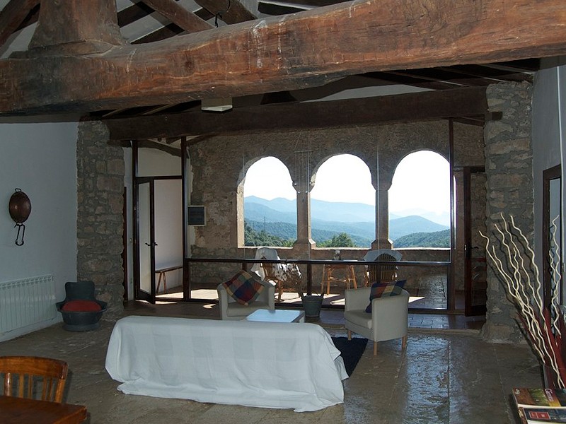 Esta casa dispone de 6 habitaciones: 4 con cama de matrimonio y 2 habitaciones con 2 camas individuales cada una. Una de las habitaciones con cama de matrimonio se comunica con una de 2 camas individuales. Tiene 3 baños completos (dos de ellos con ducha y uno con bañera). Tiene una amplia cocina-comedor con chimenea, una sala de TV y juegos, y una gran sala de unos 60m2 de uso múltiple con zona de sofás, una gran mesa, y con acceso a una gran terraza exterior con magníficas vistas sobre el valle de Bianya. Puede ampliar la capacidad hasta un máximo de 16 personas, con habitaciones múltiples.