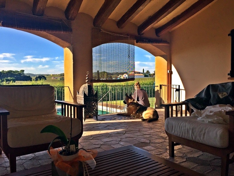 Esta galería, de 90 m2, es el lugar ideal para hacer tus comidas, con vistas a los viñedos.