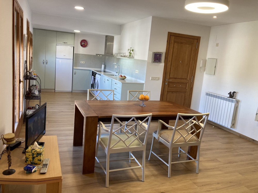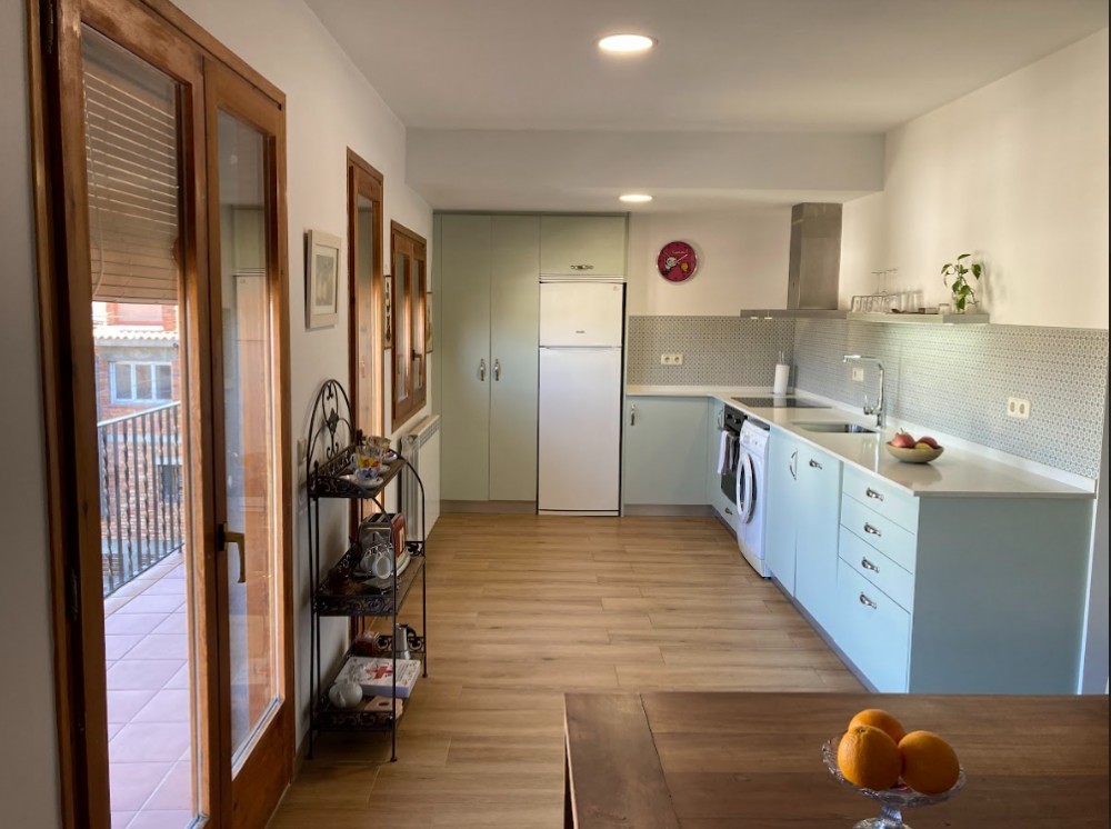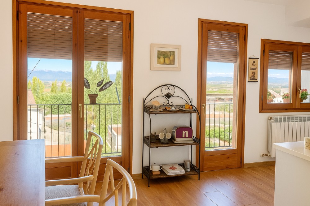 Tanto el dormitorio como el salón-comedor y la cocina son espacios con mucha luz natural y balcones con vistas al pueblo y al paisaje agrícola que lo rodea.
