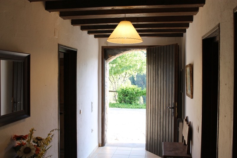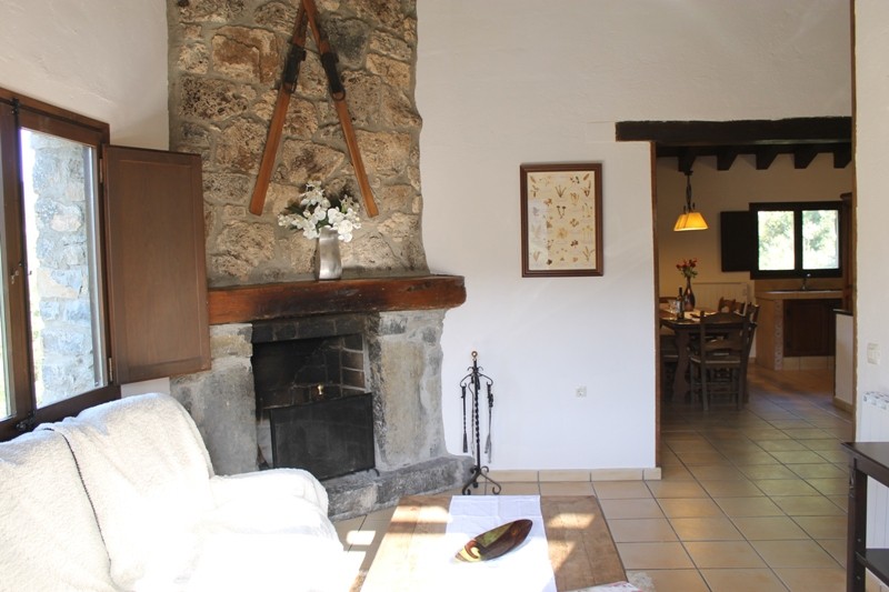 La maison est sur le rez de chaussée de trois chambres avec salles de bains. Le premier étage se compose d'un grand espace avec cuisine ouverte cuisinière, four et micro-ondes, salle à manger, salon avec cheminée, une chambre double et salle de bains . Il ya aussi une terrasse arcade, donnant sur la piscine et les forêts qui sont juste en face de la maison.