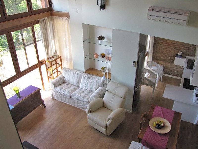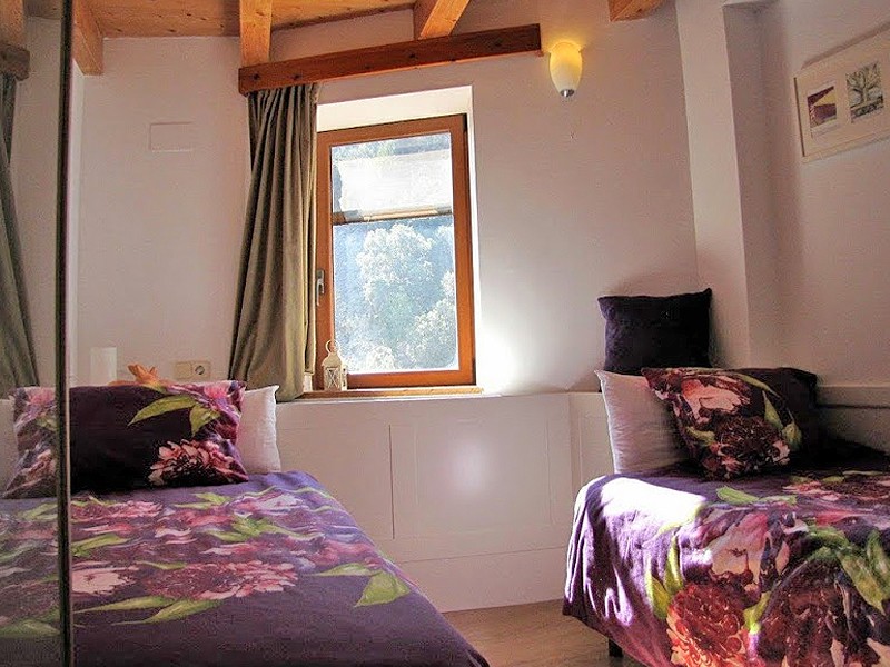 Cet appartement a deux étages et est accessible monter les escaliers. Au premier étage, vous trouverez la salle à manger avec cheminée, cuisine entièrement équipée, une chambre double et une salle de bains. La maison a des fenêtres très grandes, nous fournissons des vues spectaculaires. A l'étage au-dessus de nous, il y a la suite double (salle de bains avec douche). Vergers peuvent accroître sa capacité avec plus de lits qui sont placés dans la chambre double avec deux lits.