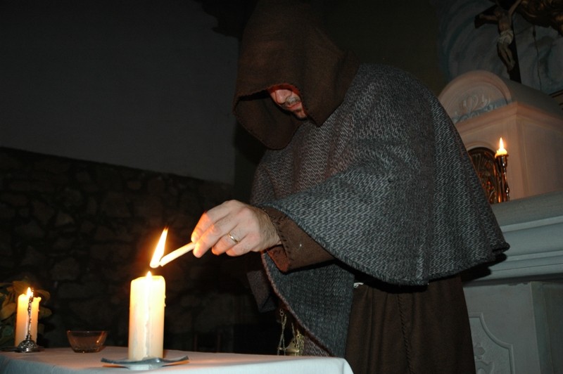 Différents personnages habillés comme au XIIe siècle expliquent les différentes facettes de la vie dans le château