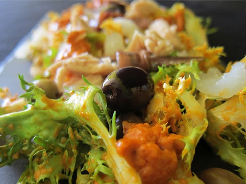 Salade fraîche avec du jambon de canard, les haricots et les noix, les vinagretta cava ou,