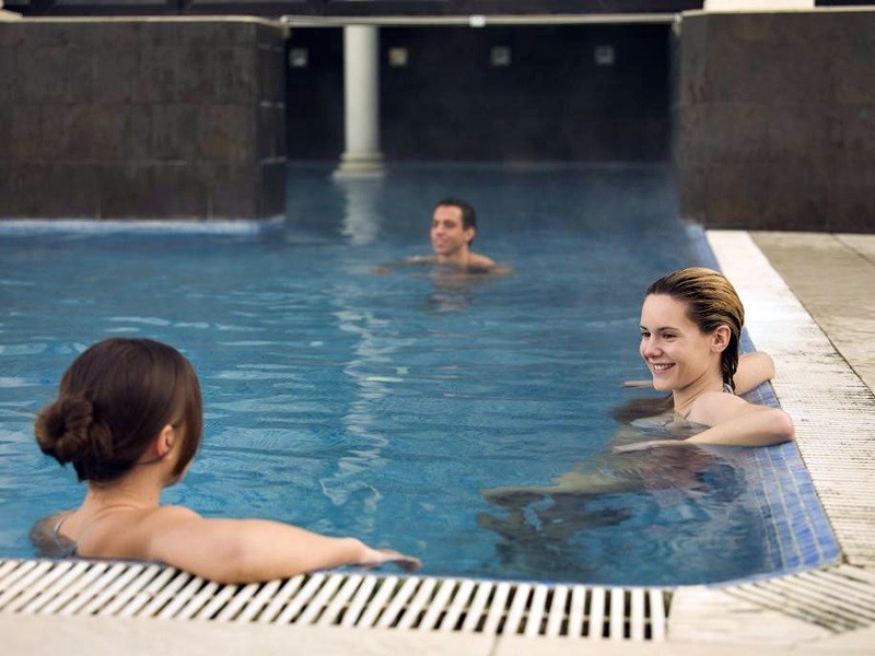 À l'intérieur du complexe, nous trouvons les salles, galerie de thermes, salles de massages, soins corporels et esthétiques, grands jardins, piscine intérieure et extérieure chauffée, parking privé, restaurant, salles de lecture, espace café et snack. ..