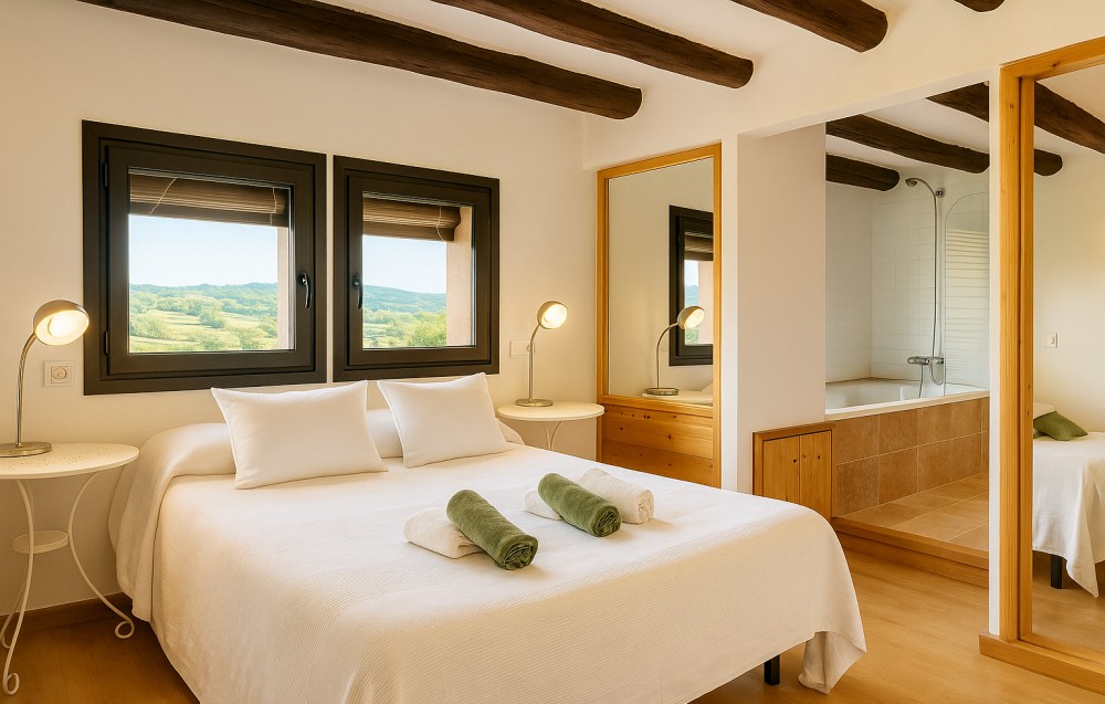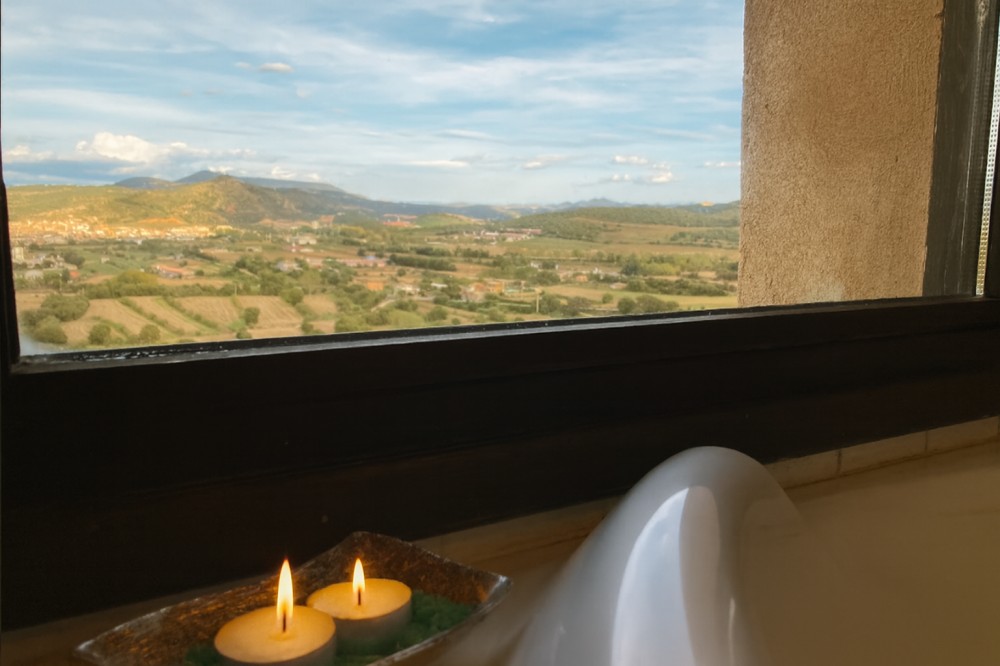 pour goûter les plats du dîner romantique de 'La Botiga' de Montsonís, et la peau pour éprouver un bain relaxant dans le jacuzzi / bain à remous de la pièce.