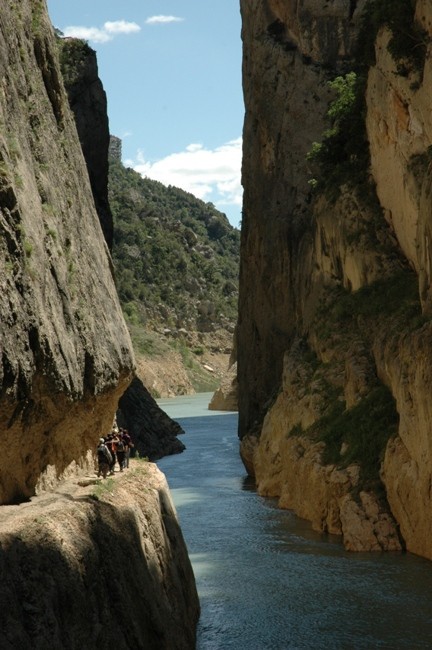 Dans la chaîne de montagnes du Montsec, dans les pré-Pyrénées de Lleida, faisant office de frontière naturelle entre la Catalogne et l'Aragon, la Noguera Ribagorçana a créé au fil du temps l'un des paysages les plus privilégiés et les plus sauvages du pays : les gorges de Montrebei. en Catalogne qui reste encore vierge, sans aucune route, voie ferrée... seulement un chemin creusé dans la roche qui permet de marcher dessus.Maintenant, cette fois nous connaîtrons la gorge de l'eau ! Avec le canoë et l'aviron en main, nous entrerons dans les eaux calmes qui séparent le Montsec d'Ares (Catalogne) du Montsec d'Estall (Aragon).